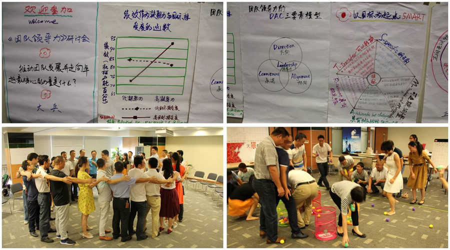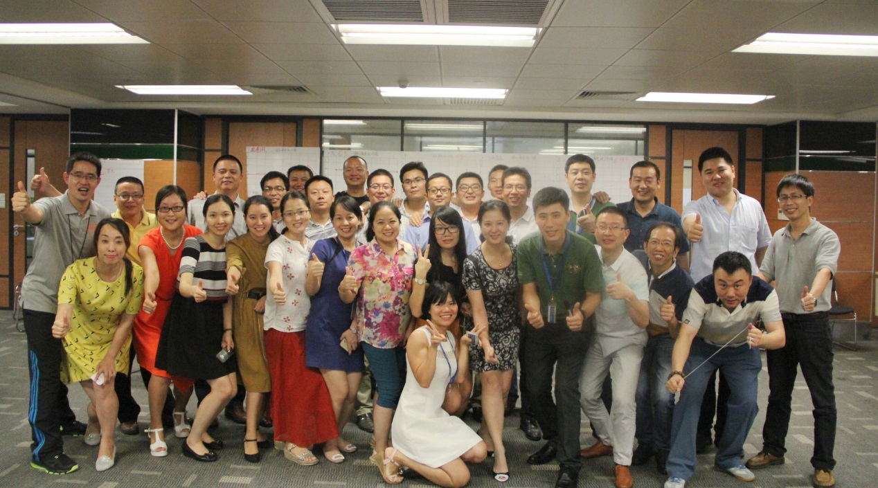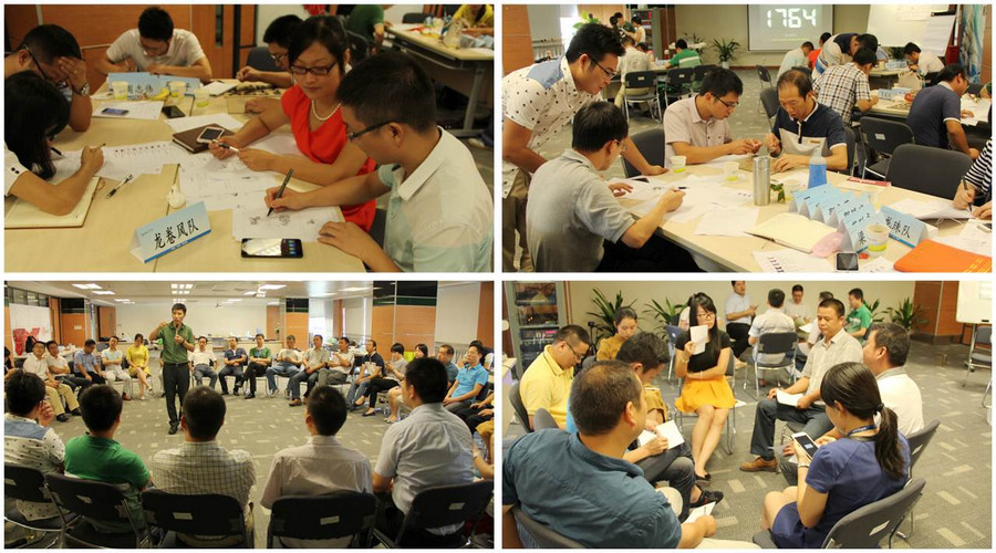 腾龙计划2015启动会的第二部分是“团队领导力”主题培训。9月25日上午,由总部培训经理刘海龙担纲主讲的“团队角色认知”课程首先开讲。通过“拼图”、“谁钓到了鳟鱼”、“鉴别蝴蝶”、“物品搜集”等8个团队角色游戏,结合贝尔宾团队角色模型和学员讨论分享,让学员对 “实干家”、“推进者”、“协调者”、“智多星”、“资源调查者”、“监督评估者”、“团队合作者”、“善始善终者”8种团队角色有了更深刻的认识,为个人在团队中如何定位,团队角色管理运用等关键团队领导情景提供了思路和具体的解决办法。课程轻松、有趣、实用,得到了学员的一致好评。