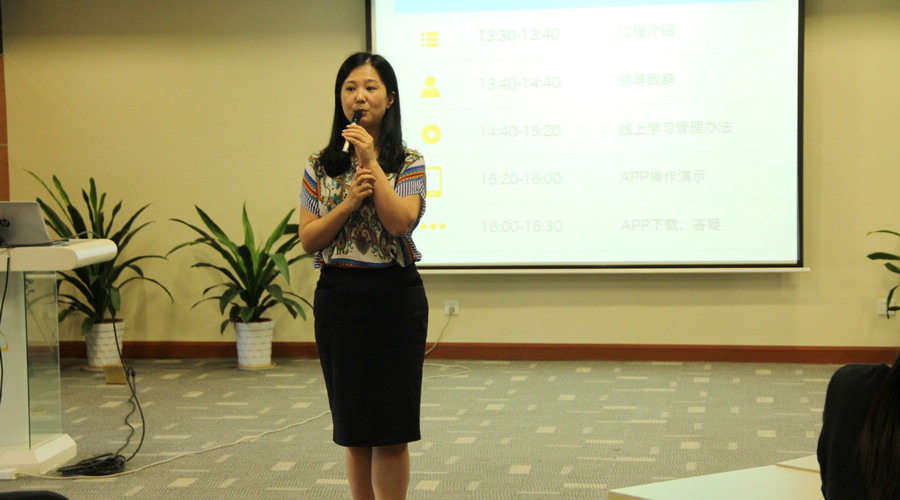 9月24日下午14:00,腾龙掌院移动学习启动会正式开始。腾龙班校长——总部行政人力资源总监姚琼女士,为大家送上了祝福。姚总肯定了腾龙计划一期的培养效果,对多名职位晋升的学员表示了祝贺,对学员的成长和进步感到欣喜,鼓励学员经历磨砺和考验,践行东江文化,共创东江环保美好未来。腾龙班班主任——总部人力资源高级经理张琳女士,首先在启动会上致辞,对腾龙计划2015移动学习提出了要求和期望。她勉励学员秉承空杯心态和教练心态,既要积极主动刻苦学习,也要将所学内容学以致用,更要将学习内容传播到学员各自所在的团队,最大化有效利用学习资源,共建学习型组织,为公司发展持续提供人才支持。