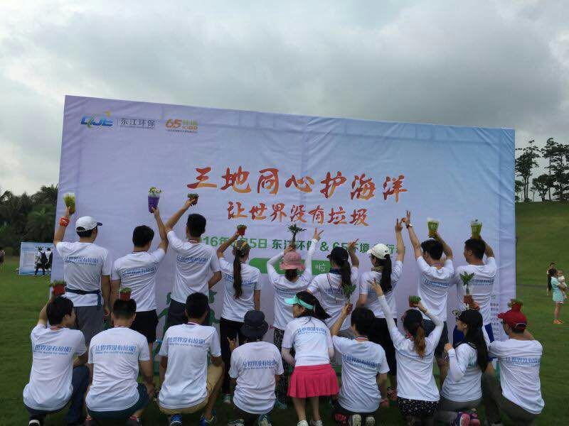 2016年6月5日是第45个世界环境日,由东江环保、65环境电商平台、深圳市红树林湿地保护基金会、香港世界自然基金会、澳门理工学院、澳门圣若瑟大学、绿色未来、深圳市蓝色海洋环境保护协会、上海仁渡海洋公益发展中心等联合倡议的“三地同心护海洋”大型公益活动在深圳湾公园正式举行。东江环保携手65电商平台在深圳湾公园为市民带去了一场集公益与健身于一体的净滩、竞走活动。