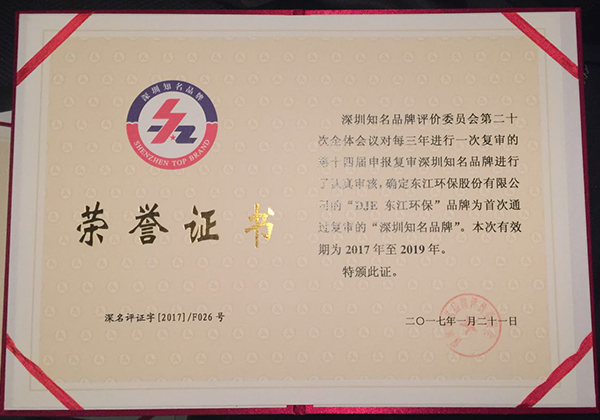 东江环保作为国内固体废物处理处置领域的先行者,经过多年的发展已经形成危废领域的行业经验和品牌资质优势,正逐步发展成为国内规模较大、资质较全和业务覆盖范围较广的综合性危险废物处理环保服务商。本次复审通过“深圳知名品牌”称号,进一步夯实了东江环保企业品牌实力,是公司综合竞争力提升的体现。