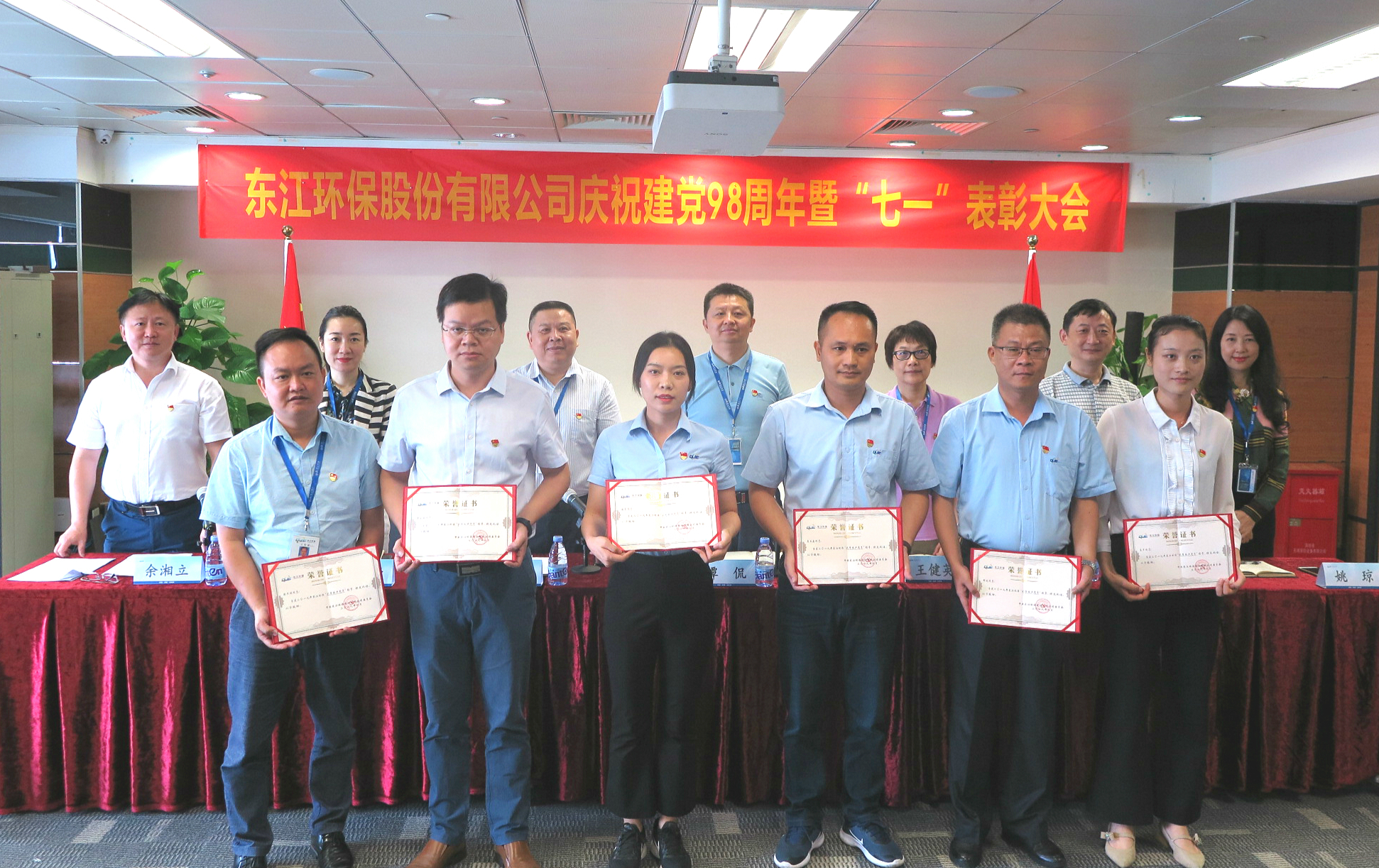 为庆祝中国共产党建党98周年,激励公司各党支部和广大党员不忘初心、牢记使命、接续奋斗,以优异的成绩迎接公司成立20周年和新中国成立70周年,7月1日上午,东江环保在总部召开庆祝建党98周年暨“七一”表彰大会。公司党委书记、董事长谭侃参加会议并讲话,公司副总裁余湘立主持会议。
